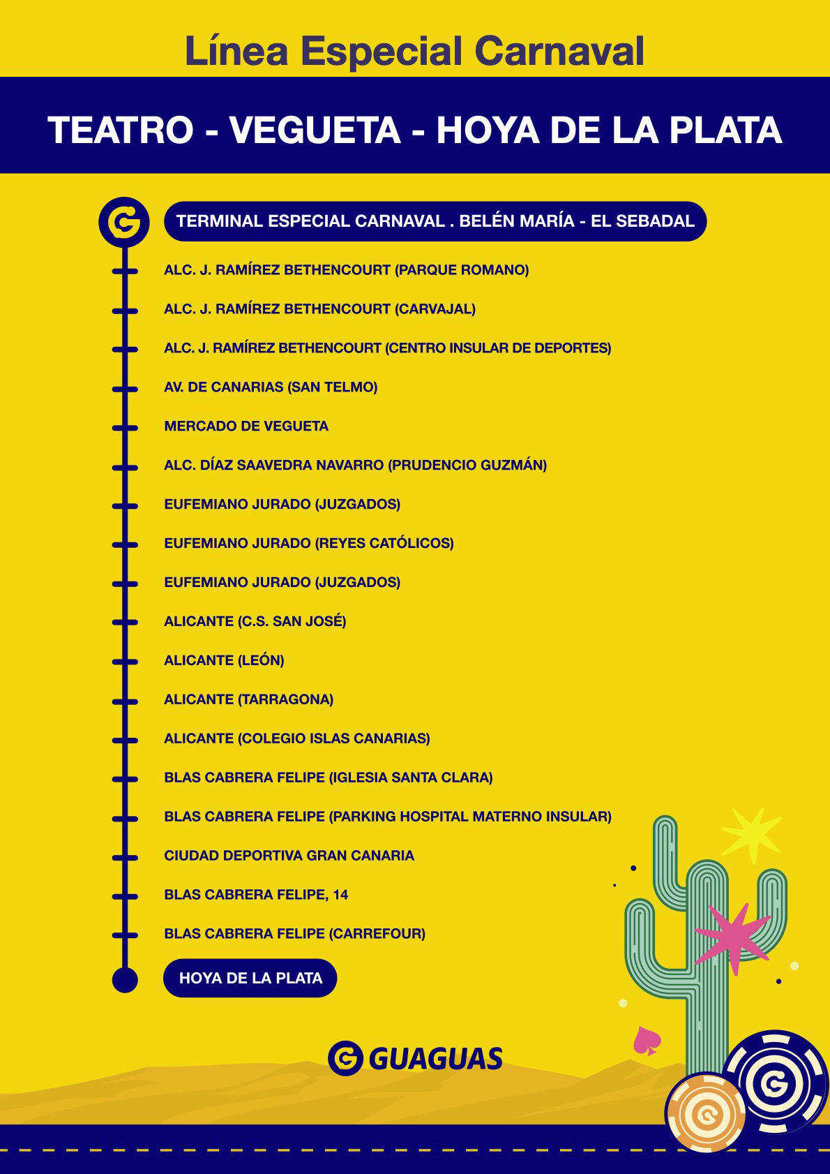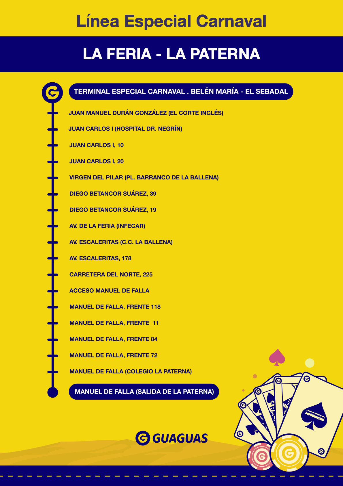 Noches de Carnaval. Terminal especial en Belén María – El Sebadal